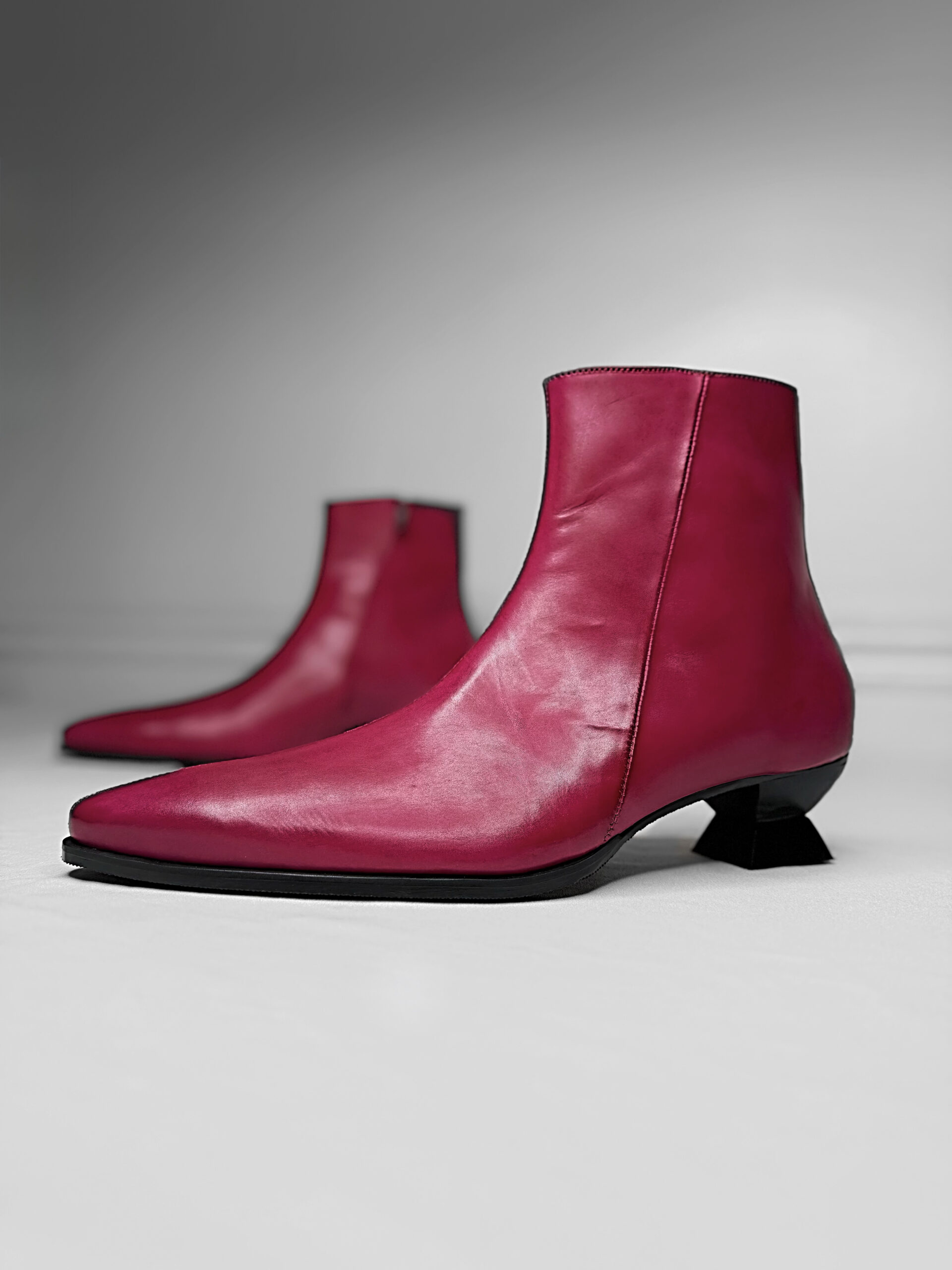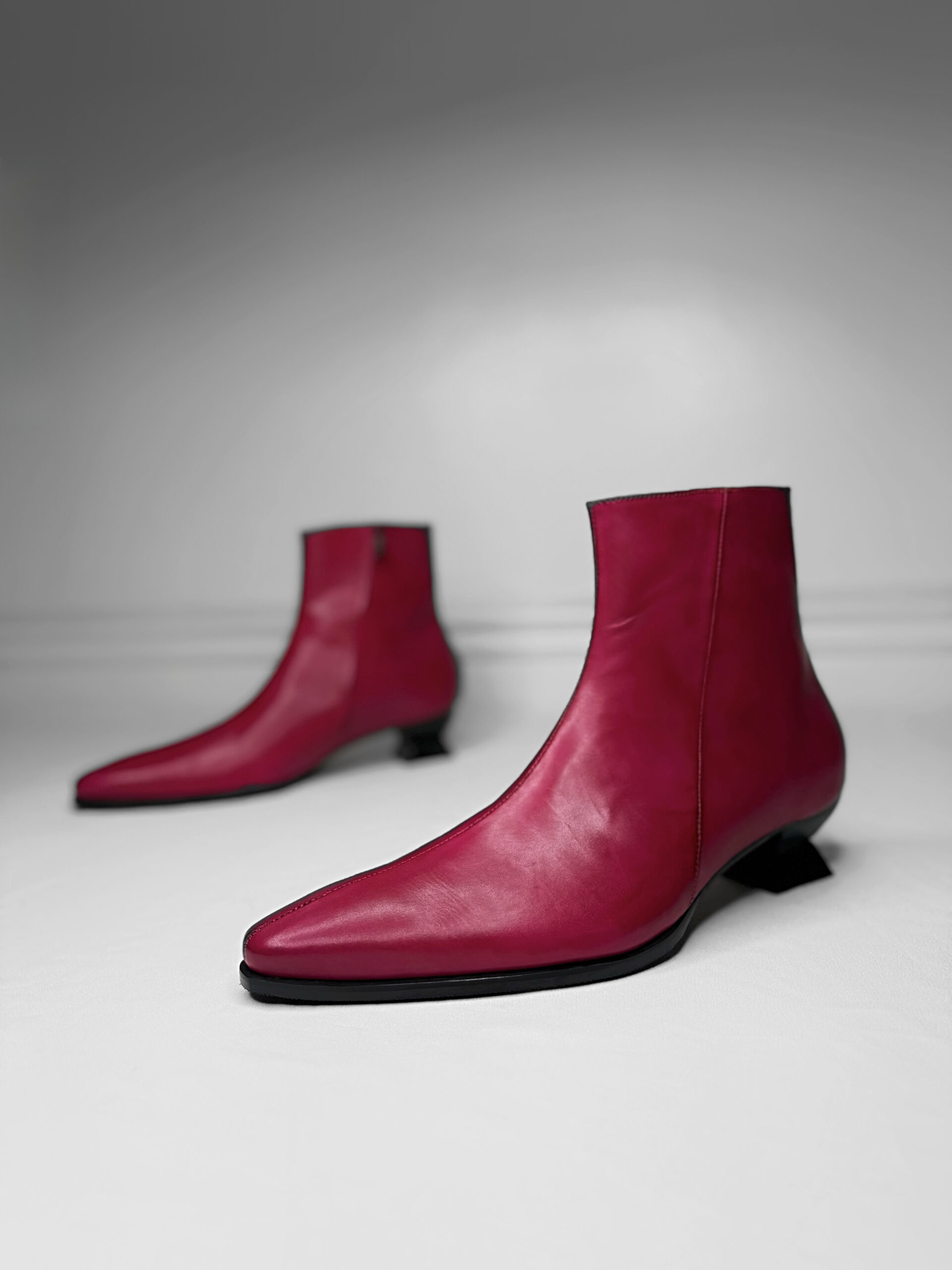 SAGA is crafted for the individual who understands that style is not an accessory—it is an attitude. Cut from premium plain leather, this boot embodies the purity of craftsmanship and the boldness of contemporary design. Its silhouette is defined by a sharp, pointed toe and a high‑ankle rise, creating a sleek, assertive, and unmistakably refined profile.