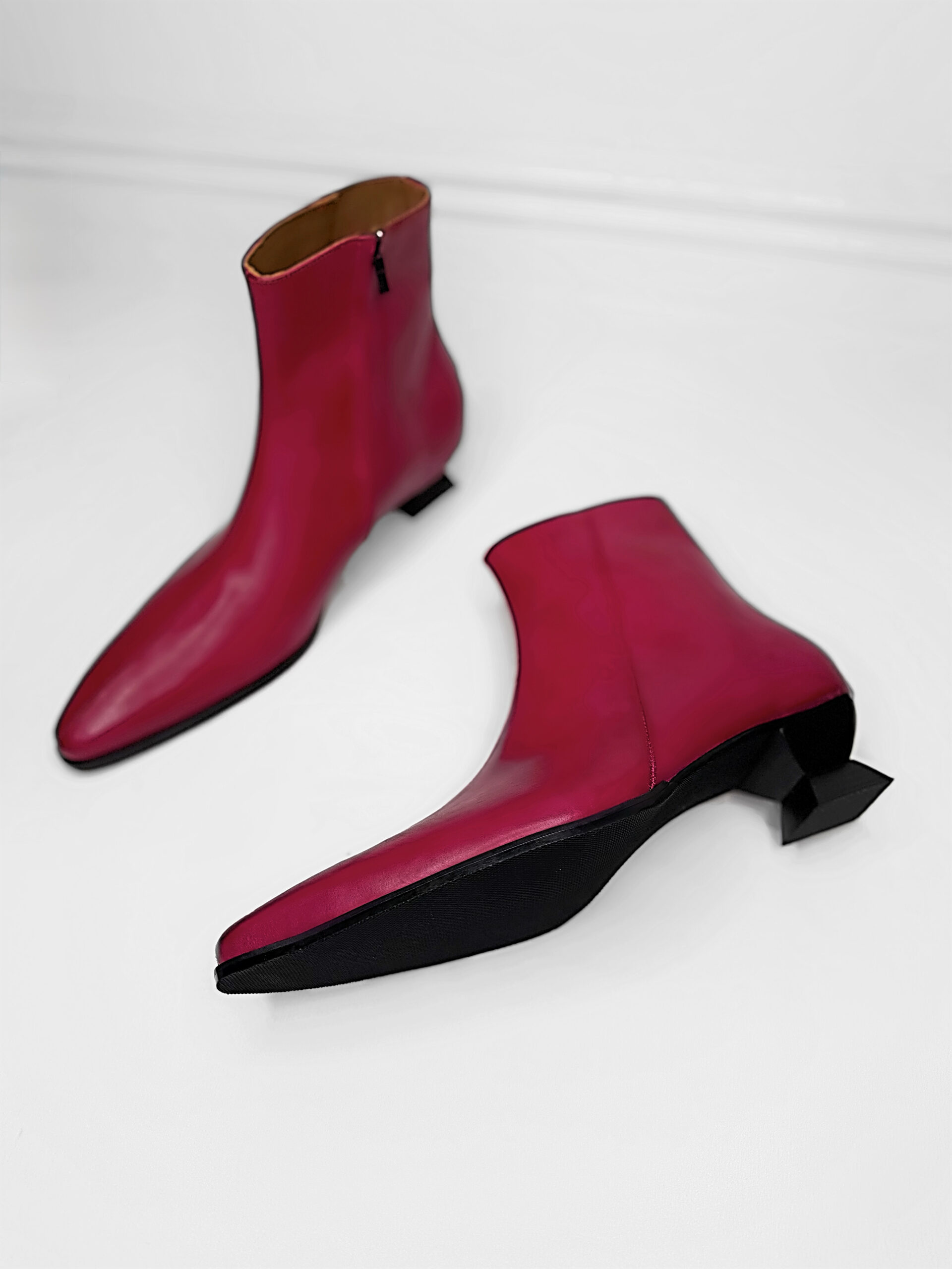 - Mind the Heel: Keep the hourglass heel clean and dry to preserve its sculptural form. Avoid prolonged contact with rough or uneven surfaces that may wear down the heel.